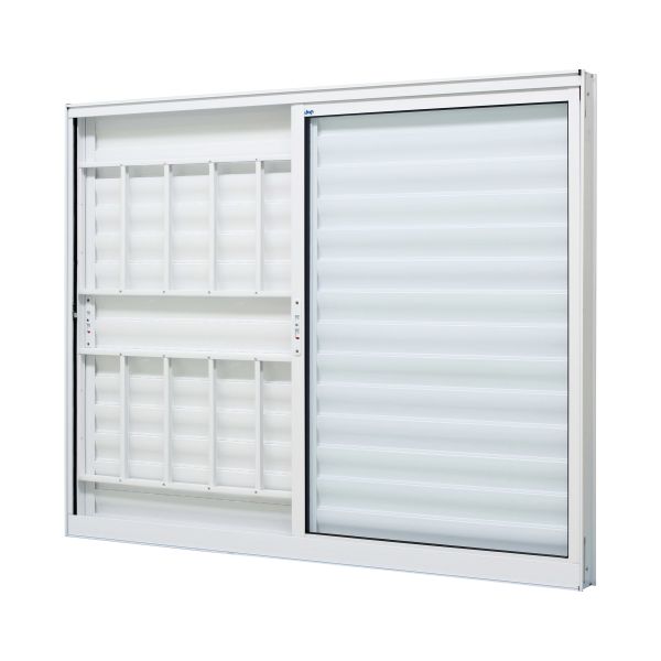A janela veneziana V3FG da linha Duraline Fix possui duas folhas venezianas, sendo 1 fixa e outra móvel, uma folha de vidro móvel e também uma grade com reforço de alma de alumínio. O vidro é liso e incolor, o que permite a passagem de luz, já as venezianas impedem essa passagem. Ou seja, esse modelo é feito para locais que não precisam de luz natural o tempo todo, mas que também não devem ficar permanentemente no escuro. É uma boa sugestão para quartos e escritórios. As folhas móveis permitem liberdade na hora de controlar a entrada de luz e ventilação.